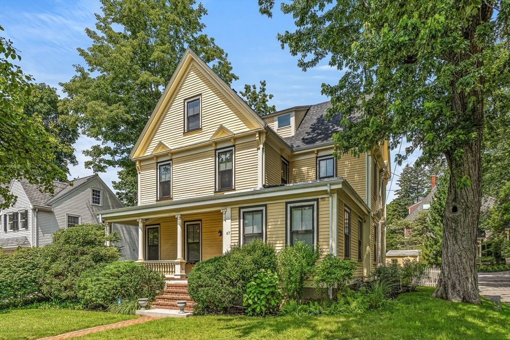 One of Winchester's premiere rentals! This gorgeous farmhouse style home just outside the town center has been beautifully renovated w/ designer finishes and offers 9 rooms, 4/5 bedrooms & 3.5 baths with plenty of space for a home office! An inviting farmers porch welcomes you into this great home, w/ double foyer, 10' ceilings, gorgeous millwork, completely updated with all new windows, new systems including high efficiency heating by gas & central A/C!! Spacious, sunny eat in kitchen with hardwood floors, stainless appliances, quartz counters & gas stove. Formal dining room w/ wainscoting, stunning living room w/bow front windows, fireplace, gleaming hardwood floors. Second floor features huge 30' family/ TV room, Primary BR w/ gorgeous new tiled bath, glass encl. tile shower & double closet; 4 rooms on second w/ 2 baths, third offers two add'l beds & full bath; and to top it off a location that can't be beat! Close Proximity to all Winchester has to offer and the TRAIN to BOSTON!